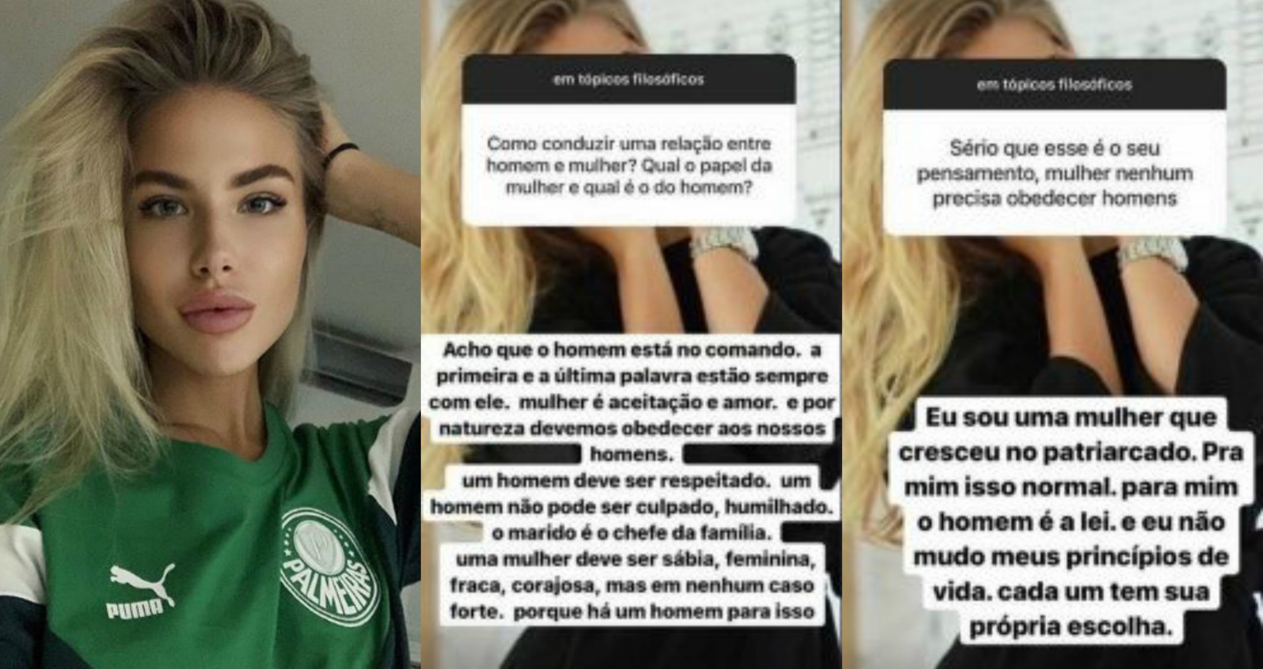 A ex-mulher do atacante do Palmeiras Luiz Adriano causou polêmica com seus seguidores no Instagram após tecer comentários considerados machistas pelo público, nesta segunda-feira. Ekaterina Dorozhko, modelo russa que fala bem português, debatia questões sobre a posição da mulher num relacionamento heterossexual com seus seguidores, quando disparou que elas devem ser sustentadas pelos parceiros e serem submissas ao homem.