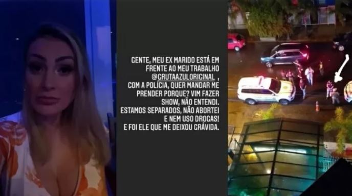 “Gente, meu ex-marido está em frente ao meu trabalho com a polícia! Quer mandar me prender por quê? Vim fazer show. Não entendi. Estamos separados, não abortei e nem uso drogas! E foi ele que me deixou grávida”, explicou.