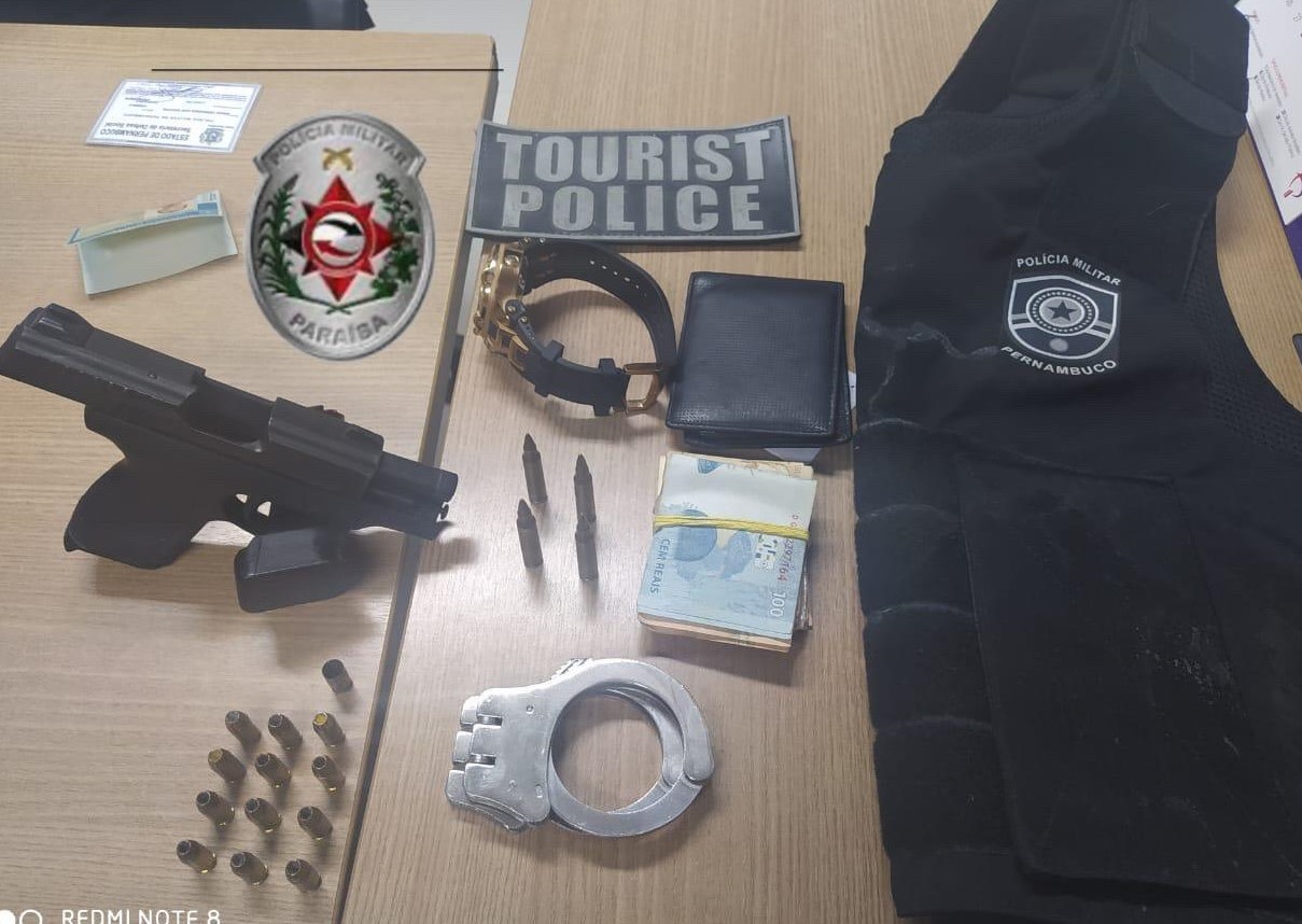 Durante a abordagem, o suspeito ainda tentou se livrar do flagrante se apresentando como policial militar de Pernambuco, inclusive mostrando identidade funcional. Na ocasião, os policiais da Companhia Especializada em Apoio ao Turista (CEATur) fizeram a consulta e descobriram que o suspeito tinha sido expulso da corporação do estado vizinho por envolvimento em roubos contra instituições financeiras.