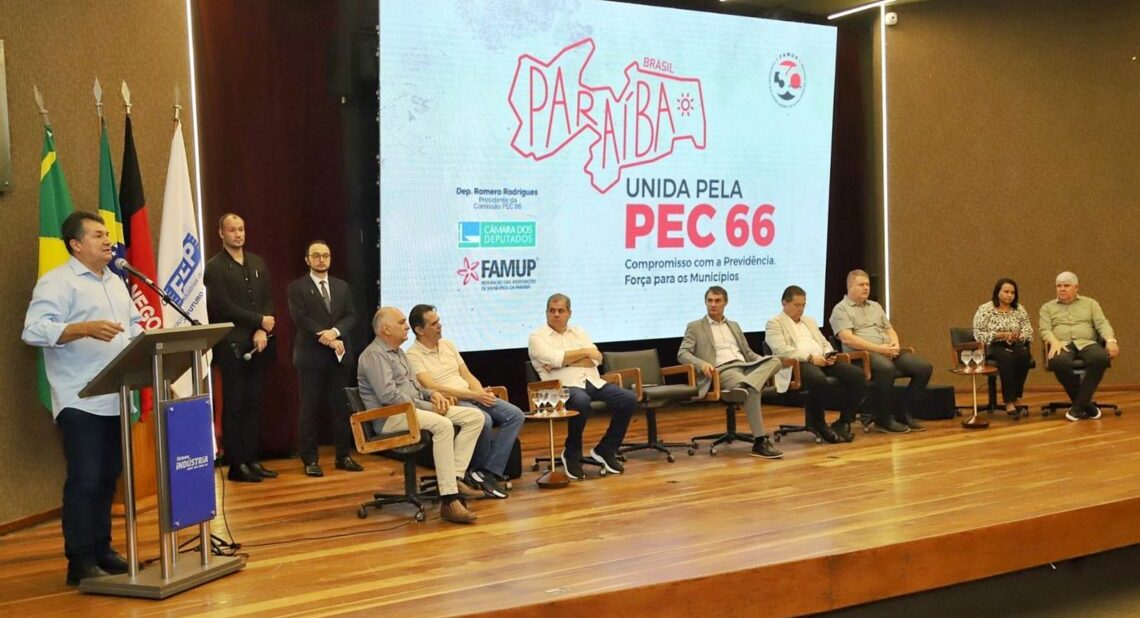 A Federação das Associações de Municípios da Paraíba (Famup) reuniu, nesta sexta-feira (13), prefeitos e prefeitas em Campina Grande para um debate sobre a Proposta de Emenda à Constituição (PEC) 66/23. A Paraíba é protagonista nos debates e também no apoio do presidente da Câmara dos Deputados, Hugo Motta, que abraçou a causa e escolheu o deputado paraibano Romero Rodrigues para presidir a Comissão Especial de análise do texto. A proposta, que estende prazos para prefeituras parcelarem dívidas com a Previdência e também define limites para o pagamento de precatórios municipais, deve ser apreciado pela Comissão logo após o São João e ir para votação no plenário no início de julho.