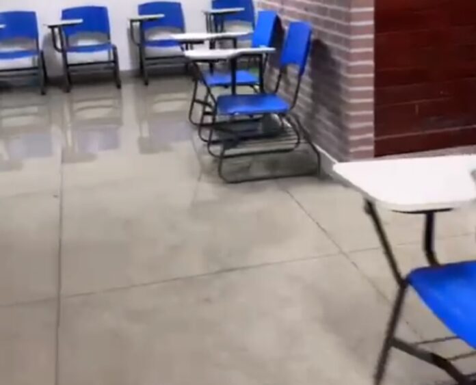Por conta das fortes chuvas que caíram em João Pessoa na manhã desta terça-feira (21), uma sala de aula do curso de Mídias Digitais da Universidade Federal da Paraíba (UFPB) ficou alagada.