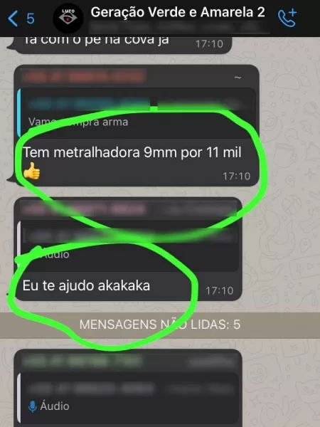 “Quem vai ser o herói que vai matar o Lula [?]”, escreveu um dos participantes. “A 12 do meu pai chegou sexta-feira kkk”, dizia uma mensagem. “Vou atirar em feminista”, afirmou outra, com emojis de smiley face e estrelas nos olhos. Alguns adolescentes também trocam mensagens citando preço de metralhadora. “Vamo compra arma.”