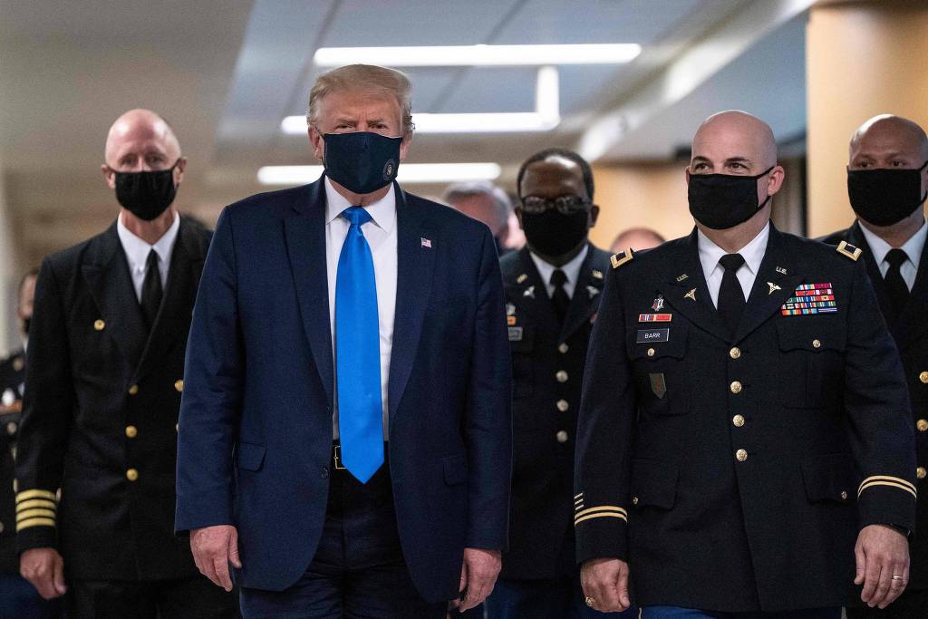 O Presidente não tinha usado máscara desde o início da pandemia nos Estados Unidos, que começou em março e já infectou mais de 3,7 milhões de pessoas e matou pelo menos 140.000 no país.