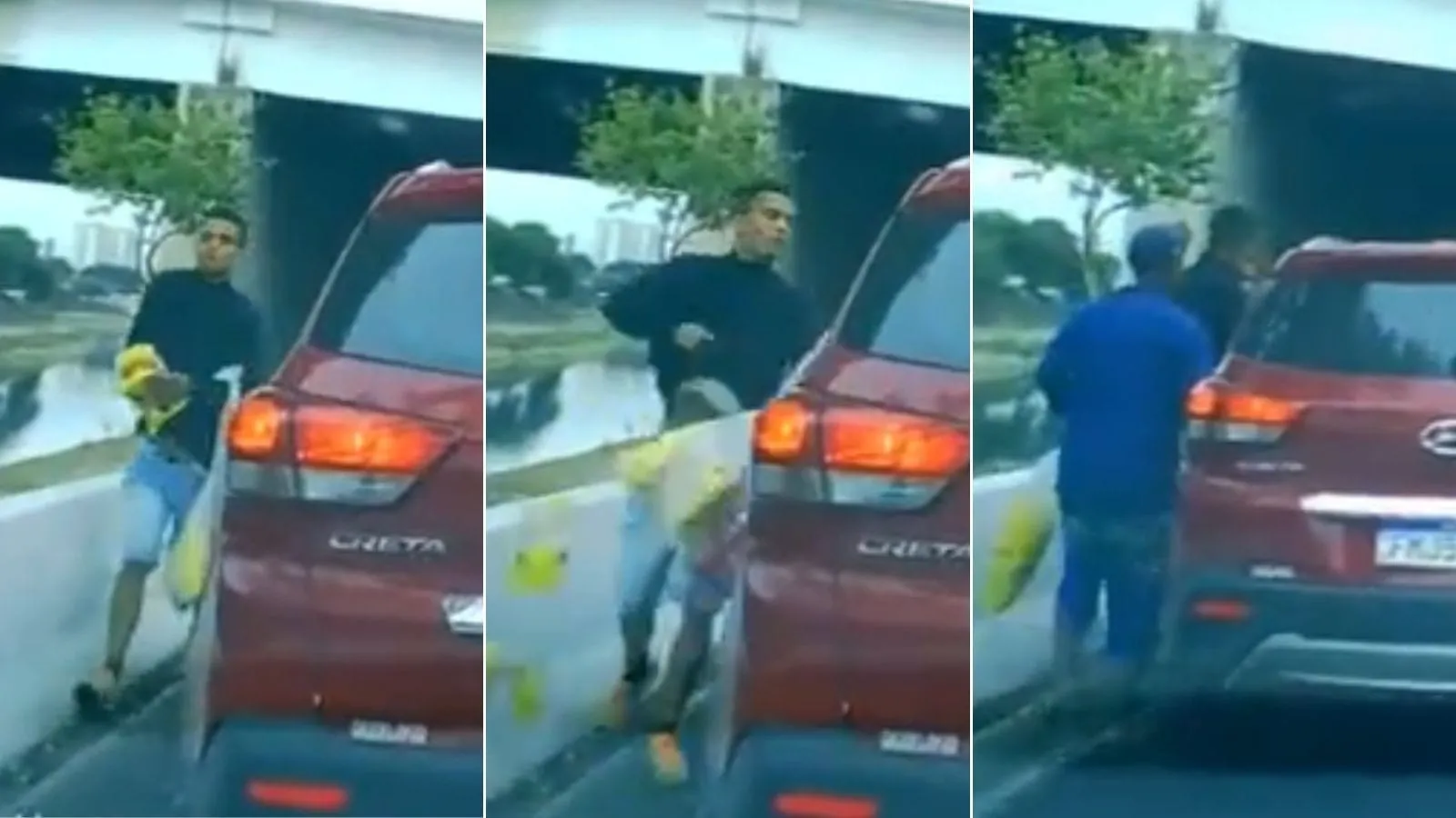 Além da impossibilidade dos carros evadirem do local (devido ao trânsito mais lento), nada levaria o motorista a crer que um vendedor que está passando na rua pode ser, na verdade, uma armadilha ambulante, conforme o vídeo que viralizou nas redes.