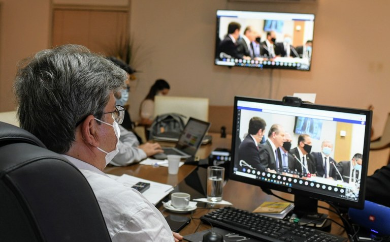 O secretário de Estado da Saúde, Geraldo Medeiros, e o secretário executivo da Saúde, Daniel Beltrammi, também acompanharam a reunião virtual.