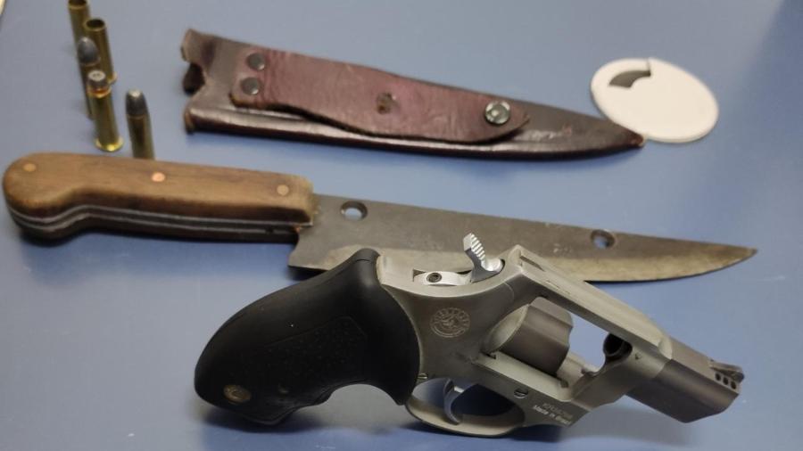O cliente tinha antecedentes antigos, de 2010 e 2011, por dirigir sem habilitação, lesão corporal no trânsito e ameaça. Após o ocorrido, a arma e a faca foram apreendidas.