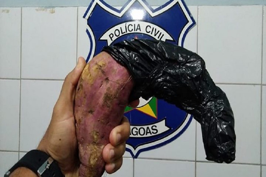 Um homem foi preso após tentar assaltar um motociclista usando uma batata doce como arma. O assaltante abordou a vítima com a mão na cintura fingindo estar armado e chegou a entrar em luta corporal com a vítima após ela reagir. Samuel Lira Rodrigues, 29 anos, foi apelidado pelos policiais da Central de Flagrantes I como “Zé Batata”. O caso aconteceu na noite da segunda-feira (15), no bairro do Benedito Bentes, parte alta de Maceió.