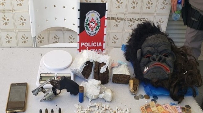 Homem é preso com máscara de gorila, arma e grande quantidade de drogas em Pombal