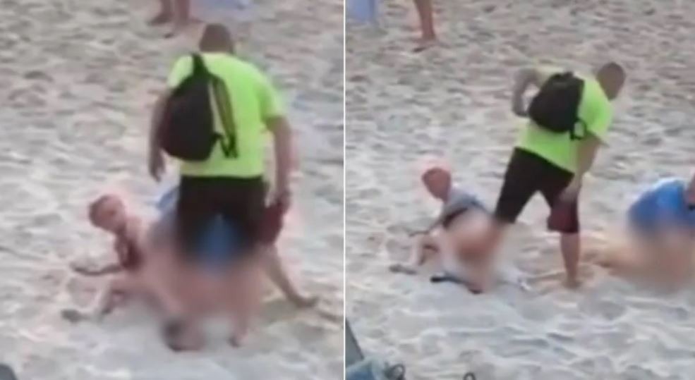 Em uma tentativa de impedir a ação, uma mulher jogou água no casal, que não deu importância e continuou o que estava fazendo. Em seguida, dois homens se aproximaram e falaram com eles. Então, o homem se distanciou da parceira. Mas, antes de se levantar, um outro banhista reagiu com revolta e bateu nele, algumas vezes, com o chinelo.