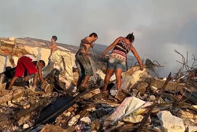 INCÊNDIO EM OITIZEIRO: População procura alimentos em entulhos de supermercado demolido