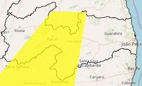 O Inmet também recomenda que, em caso de necessidade, a população busque informações junto à Defesa Civil, pelo telefone 199, ou ao Corpo de Bombeiros, pelo número 193. O alerta atinge regiões do Sertão Paraibano, Agreste Paraibano e Borborema.