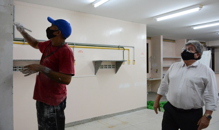 O governador João Azevêdo realizou, nesta sexta-feira (19), uma visita técnica ao hospital Frei Damião, no bairro Cruz das Armas, em João Pessoa, onde estão sendo finalizadas as obras de adaptação para abertura de 13 leitos de Unidade de Terapia Intensiva (UTI) e 40 leitos de enfermaria com capacidade para a realização de terapia respiratória destinados a pacientes diagnosticados com a Covid-19. O atendimento deverá ser iniciado até a próxima quarta-feira (24).