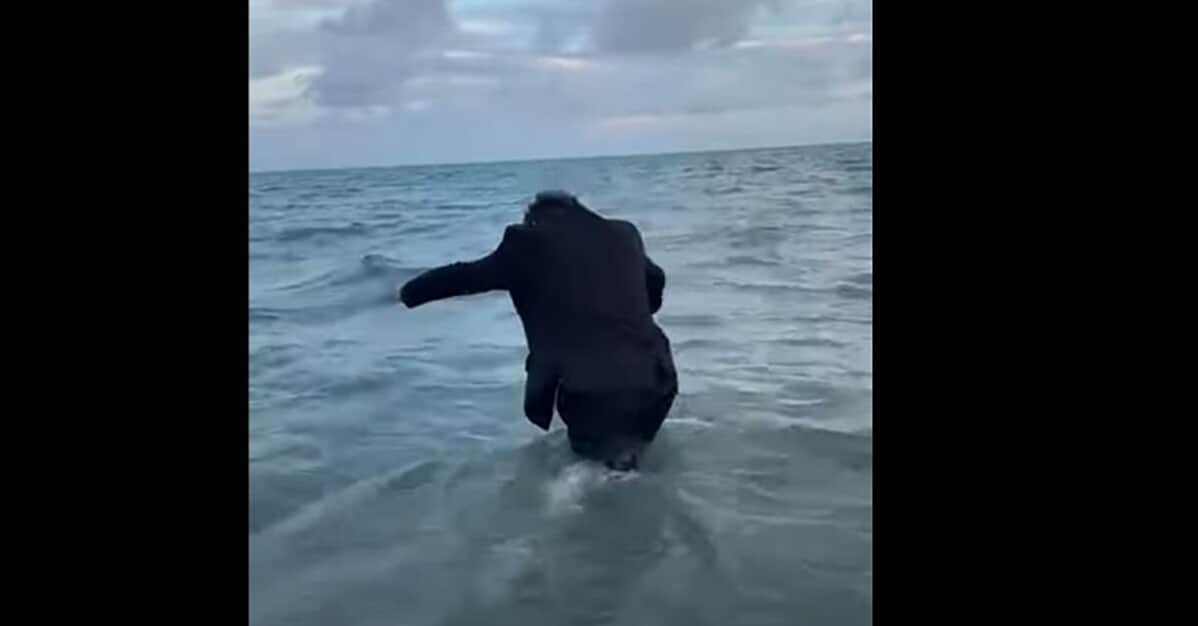 Juiz mergulha no mar de paletó e gravata para comemorar aposentadoria