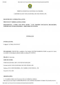 Durante a tarde desta segunda-feira (05) o Tribunal Regional Eleitoral da Paraíba emitiu uma intimação para que a coligação “A Força do Povo”, que tem o ex-governador Ricardo Coutinho como candidato para a Prefeitura Municipal de João Pessoa, substitua o seu candidato a vice-prefeito.