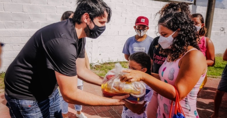 Os kits entregues foram montados com alimentos doados durante a partida solidária de inauguração da reforma do Campo Wilsão, em Mangabeira. Na ocasião, secretários da gestão municipal, vereadores e jornalistas se revezaram em campo em uma partida de futebol.