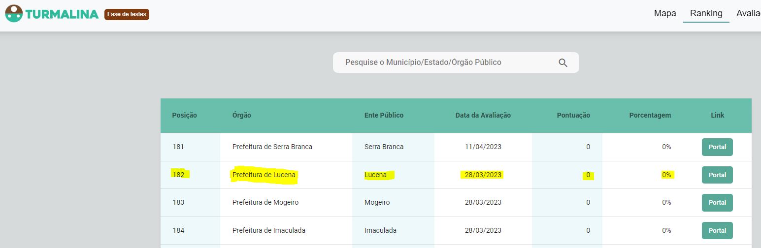 Os dados em questão são obtidos pelo robô Turmalina, que trabalha todos os dias durante a noite analisando os portais da transparência de todas as cidades paraibanas, aplicando filtros desenvolvidos pelo TCE-PB, para, a partir deles, classificar o site em questão como mais ou menos transparente. Lucena está na 182ª posição.
