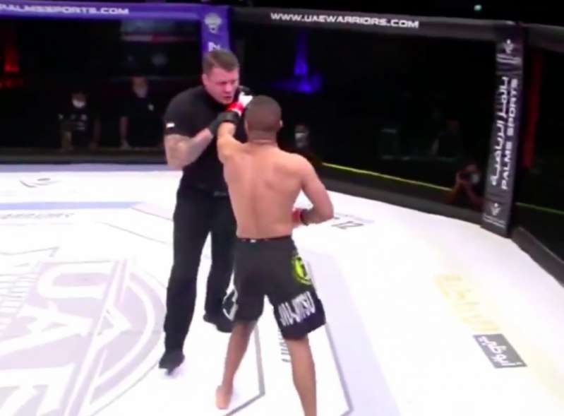O lutador Ahmad Al Darmaki venceu o adversário Bogdan Kirileno ainda no primeiro round do confronto com uma finalização, aplicando um mata-leão. Entretanto, seu temperamento entrou em jogo e tudo acabou mudando.