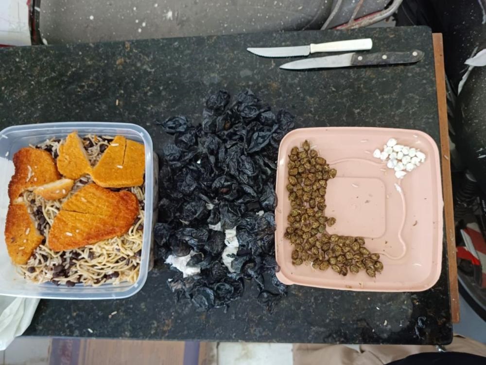 A mulher aproveitou essa oportunidade para tentar introduzir a droga “disfarçada” na comida. As drogas supostamente pertenciam a outro presidiário, que foi conduzido, juntamente com a mãe e o filho, à delegacia local.