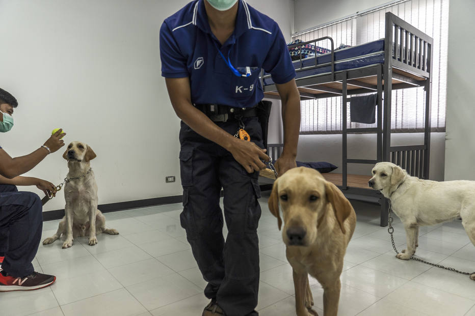Os labradores tailandeses fazem parte de um projeto de pesquisa executado em conjunto pela Universidade Chulalongkorn e a Chevron. A empresa petrolífera já havia usado cães para testar seus funcionários quanto ao uso de drogas ilegais, e um gerente tailandês se perguntou se os animais poderiam fazer o mesmo com o coronavírus. A capacidade de um cão de farejar covid-19 não é, em teoria, diferente de sua habilidade em detectar narcóticos, explosivos ou um lanche escondido no bolso.