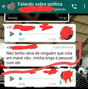 “Não tenho raiva de ninguém que vota em mané [Manoel] não, minha briga é pessoal com ele”, disse.