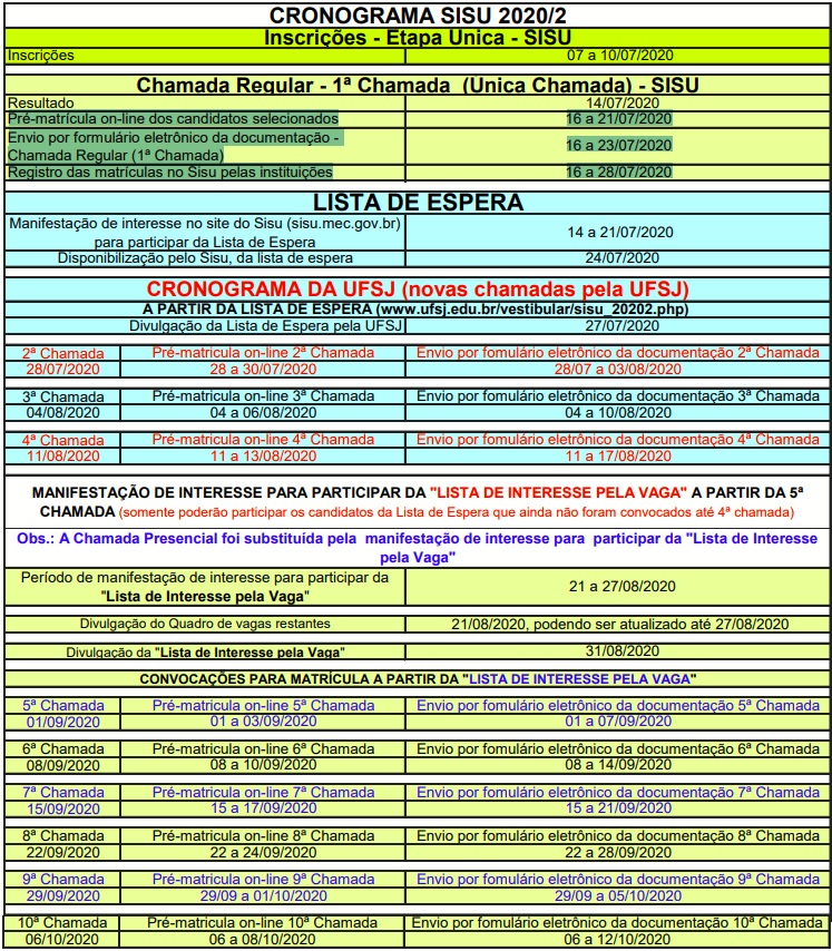 - Período de manifestação para lista de espera: de 14 a 21 de julho (até 23h59)
