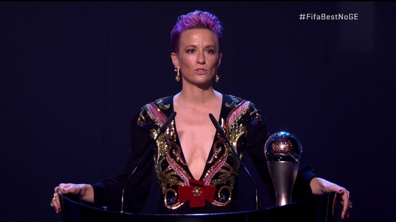 – Uma das histórias que me inspiraram muito esse ano foi de Raheem Sterling e Koulibaly. Eles fizeram grandes histórias no campo mas a maneira como encararam o racismo este ano e provavelmente em toda a sua vida… A torcedora iraniana que colocou fogo no próprio corpo apenas por ter ido a um jogo, as jogadoras LGBT que lutam contra a homofobia. Se todo mundo se posicionasse contra o racismo como todas essas pessoas se posicionaram, se todos se posicionassem contra a homofobia como as jogadoras LGBT fazem para jogar futebol. Se realmente queremos mudanças, precisamos de todo mundo se posicionando contra o racismo, contra a homofobia, pela igualdade de pagamentos. Temos grandes oportunidades, temos grande sucesso, uma grande plataforma. Temos a oportunidade de usar esse jogo lindo para realmente mudar esse mundo para melhor. Temos um poder incrível nesta sala – afirmou Megan Rapinoe ao receber o prêmio.