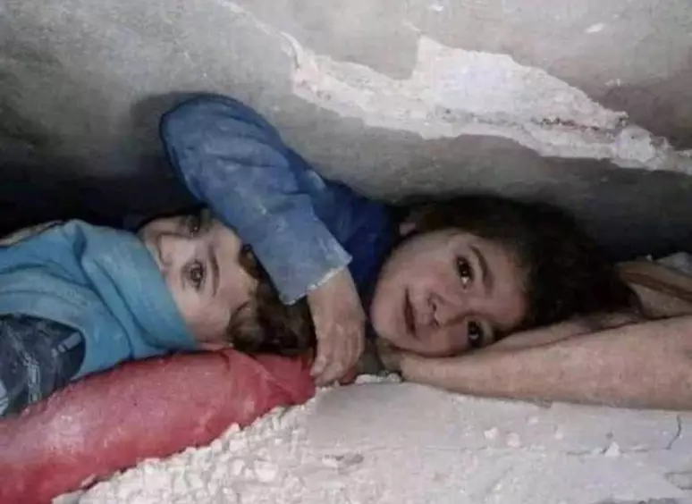 Menina de 7 anos protege irmão dos escombros após terremoto na Síria