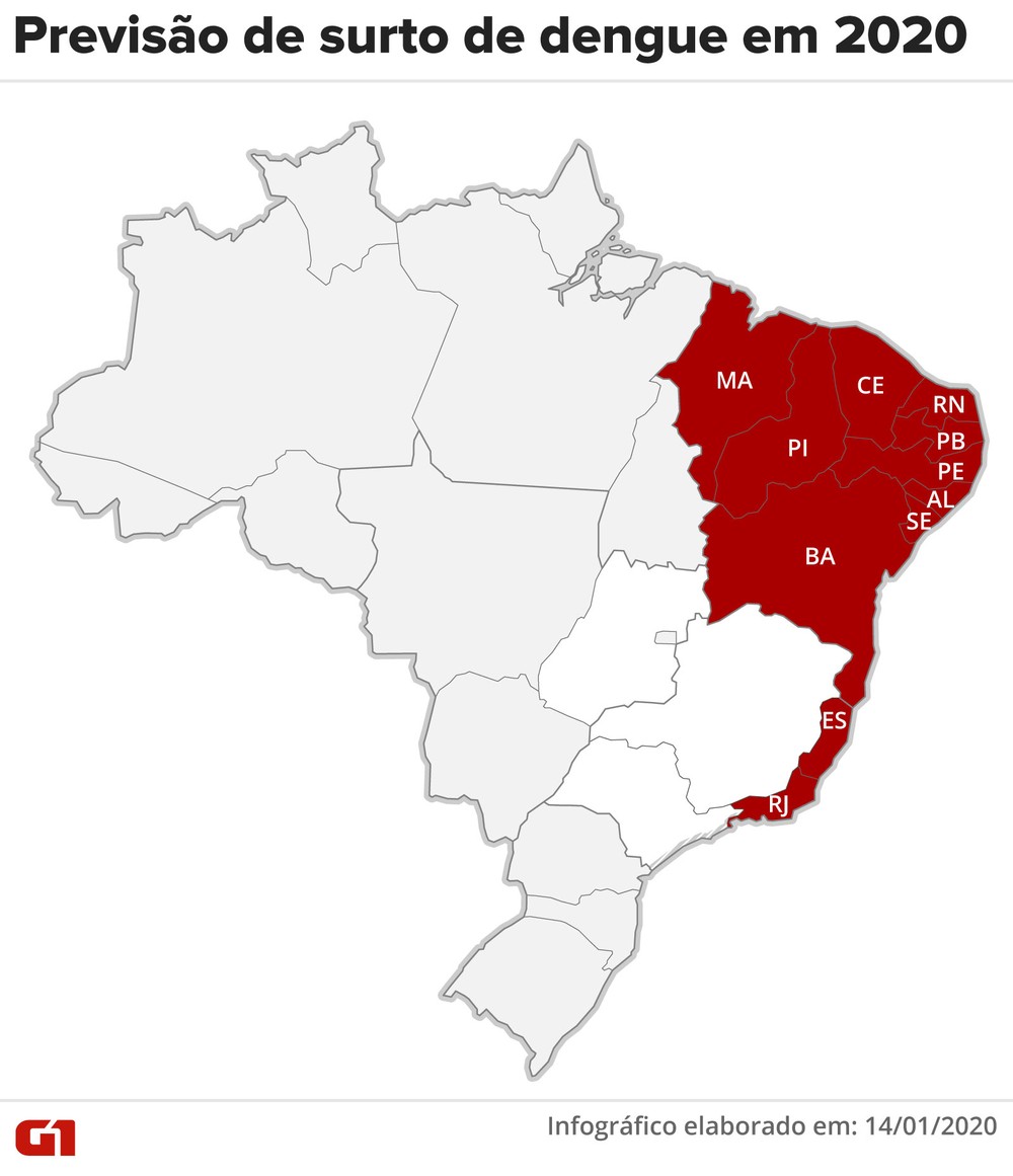 “A dengue é uma doença sazonal e o quadro é dinâmico e pode mudar em pouco tempo, mas, no momento, os nove estados do Nordeste e as regiões do Sudeste com grande contingente populacional pouco afetadas em 2019 estão no nosso alerta”, afirmou ao G1 o porta-voz do Ministério da Saúde, Roberto Said.