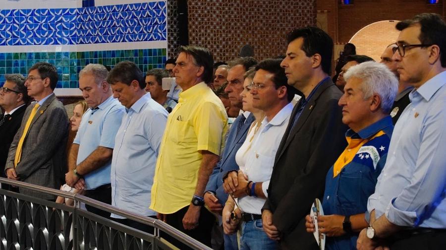 Não comungou. Diferentemente dos ex-ministros Tarcísio de Freitas e João Roma, Bolsonaro não comungou na missa de Aparecida. Ele também não completou as orações e não rezou a oração do Pai Nosso.