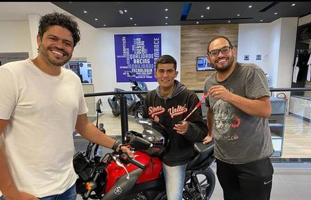 O entregador também foi presenteado pelo humorista Matheus Ceará, do SBT, que se comoveu com a história, e deu uma motocicleta nova para o rapaz trabalhar.