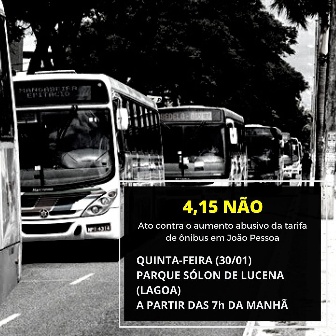 Movimentos sociais estão organizando para a manhã desta quinta-feira (30) um protesto contra o aumento das passagens de ônibus de João Pessoa. A mobilização deve acontecer logo no começo da manhã, às 7h, no Parque Solon de Lucena.