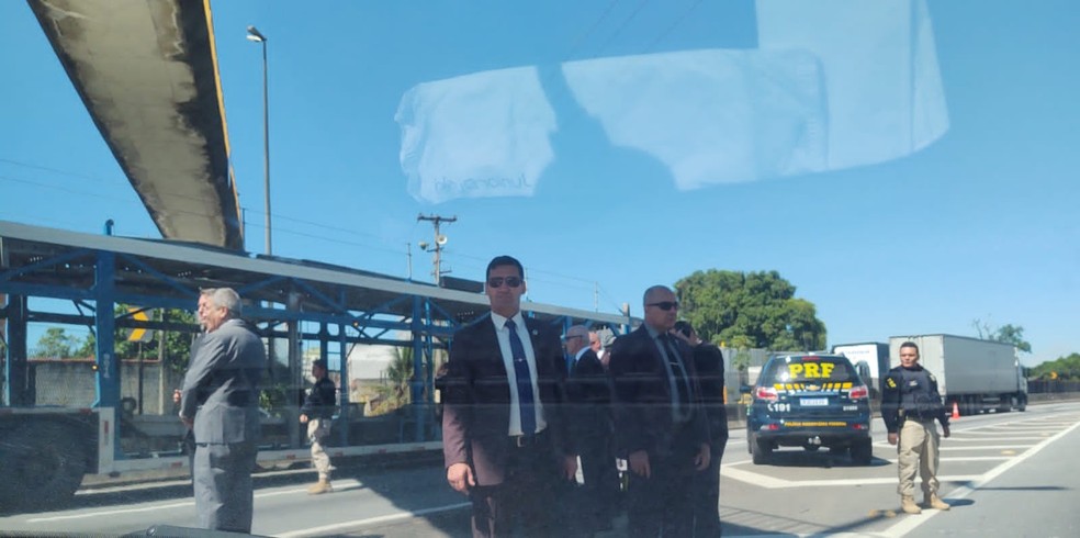 A PRF (Polícia Rodoviária Federal) abordou o carro e encaminhou o caso a agentes da PF (Polícia Federal), que estavam no local em apoio à segurança do presidente.