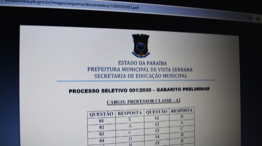 A Prefeitura de Vista Serrana, no Sertão do Estado, publicou nesta terça-feira (18) o Gabarito Preliminar do Processo Seletivo Simplificado nº 001-2020.