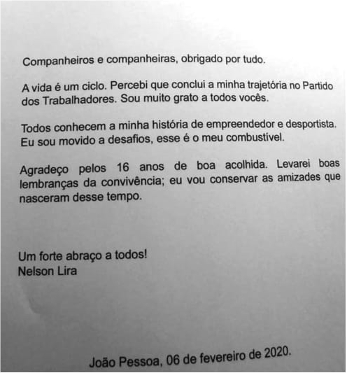 Nelson Lira é lançado à PMJP pelo PT, mas anuncia desfiliação da sigla; e agora?