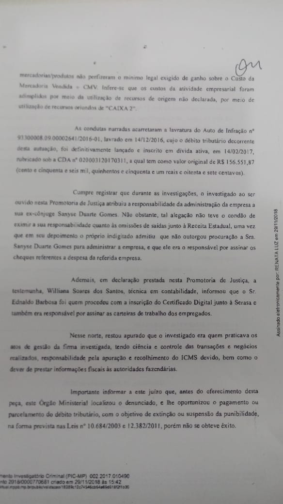 O vereador do Conde, Ednaldo Barbosa da Silva, conhecido como Naldo Cell (PT) foi notificado pelo Fisco Estadual por sonegação de impostos das suas empresas. Ele foi multado em mais de R$ 150 mil. Naldo alegou não ter o montante para quitar o débito. Segundo informações reveladas ao Blog do Anderson Soares, o vereador conseguiu parcelar a dívida em 80 meses.