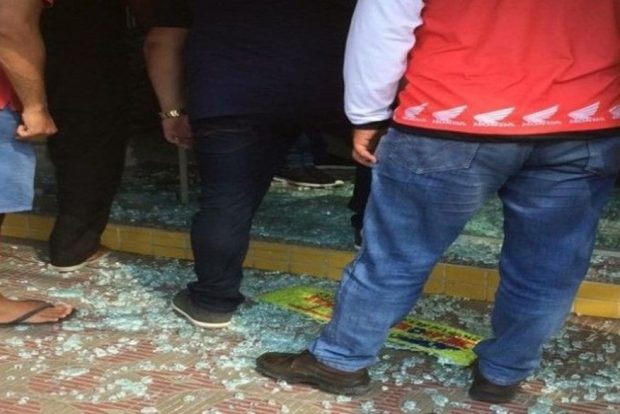 Diversas vidraças foram danificadas, mas ninguém ficou ferido.