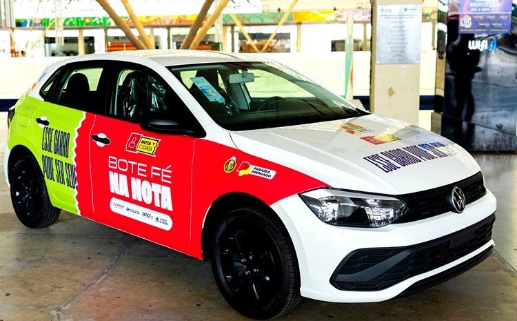 Pelo segundo ano consecutivo, o Nota Cidadã terá um prêmio extra no mês de dezembro: um carro zero quilômetro Polo Track (Volkswagen), modelo 2024/2025, além dos R$ 100 mil em dinheiro distribuídos nos 31 sorteios, sendo 30 prêmios no valor de R$ 2.500,00 e um prêmio especial de R$ 25 mil. Para concorrer aos prêmios mensais, basta exigir a nota fiscal com o CPF no comércio local em qualquer compra nos 223 municípios paraibanos.