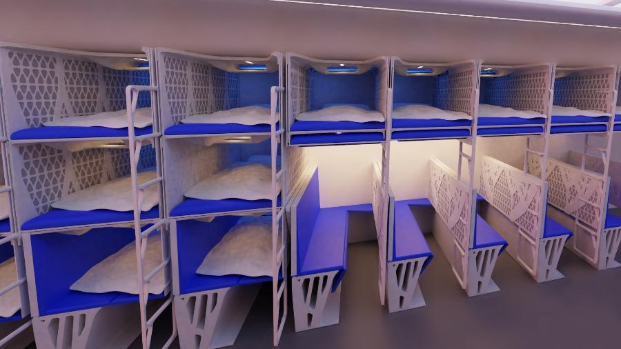 Apenas três beliches, com duas camas cada um, estarão disponíveis por avião, e haverá um custo extra para usufruir desse benefício. O valor não foi divulgado pela empresa.
