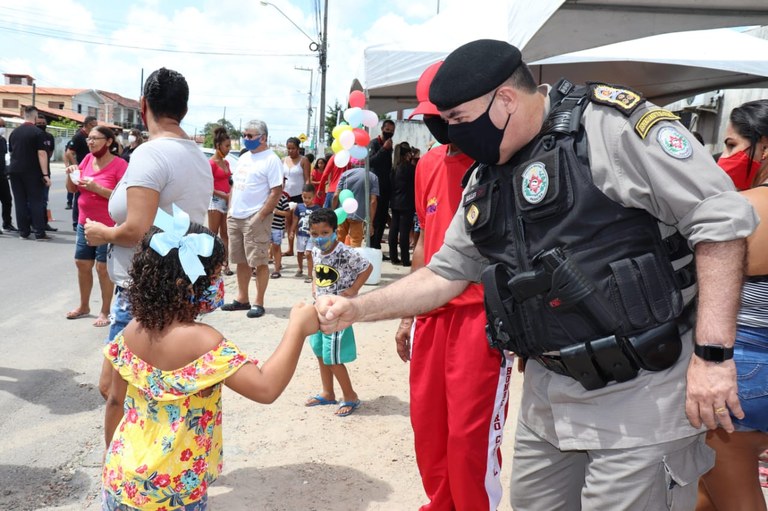 “O momento é de agradecer por todas as parcerias, mas sobretudo a participação das famílias nesse processo solidário. A Operação Criança Feliz nos enche de alegria e, para a garotada, é um momento muito especial de proximidade com a Polícia Militar, com os nossos homens e mulheres de farda que nos protegem diariamente”, disse o coronel Euller durante entrega de brinquedos na Unidade de Polícia Solidária no bairro do Ernesto Geisel, um dos pontos de entrega das doações.