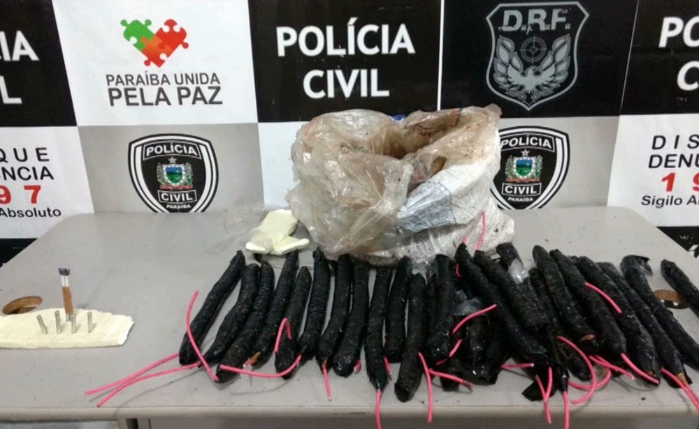 Ao todo, 31 “bananas” de dinamite foram apreendidas por volta das 16h30 desta quinta-feira (26), na Zona Rural do distrito de Galante, na região de Campina Grande. A ação deu continuidade a operação “Malote Blindado”, da Polícia Civil, que investigou o assalto a um carro-forte na UEPB, em abril deste ano.