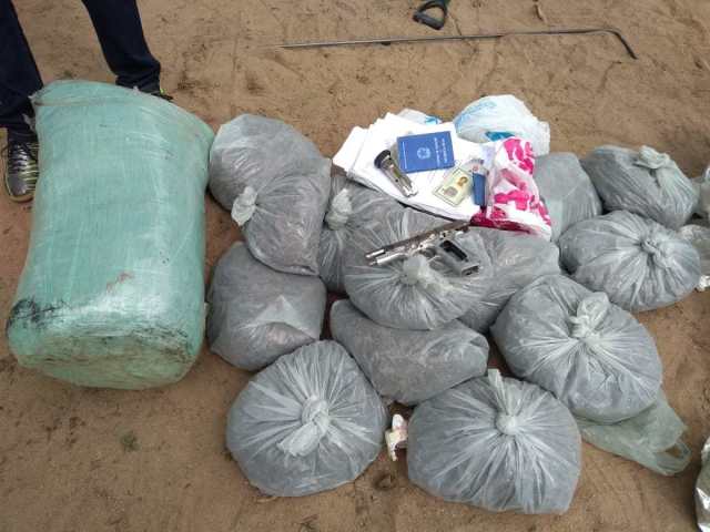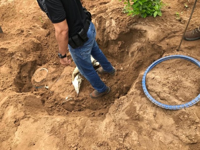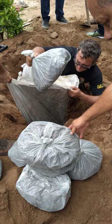 Até o presente momento foram encontrados 03 (três) barris enterrados. Um estava vazio e nos outros dois foram encontrados maconha prensada e também em sacos, em condição de revenda. Aproximadamente 50 quilos de maconha estavam enterrado no sítio alvo das buscas.