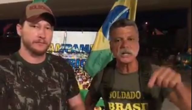 Marcelo e Paulo estão participando do acampamento “300 do Brasil”, em apoio a Bolsonaro, que está instalado nos arredores da Praça dos Três Poderes. Eles costumam usar fardamento militar e enviar mensagens de apoio ao presidente e ataques ao Legislativo e Judiciário.