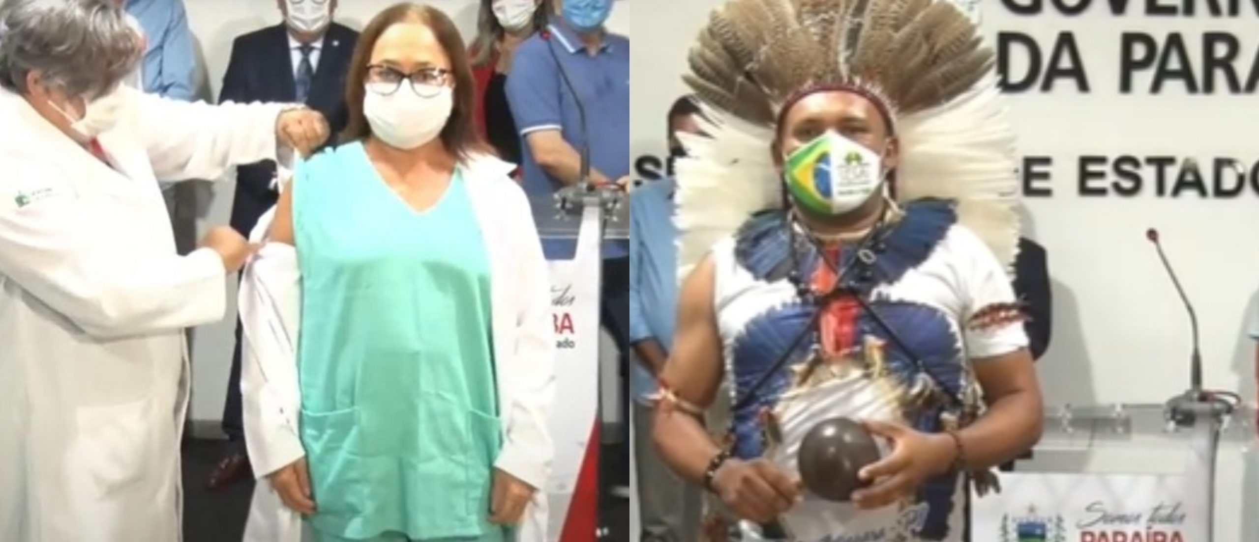 OS PRIMEIROS IMUNIZADOS: Enfermeira do Complexo Clementino Fraga e índio potiguar são vacinados no início da campanha na Paraíba
