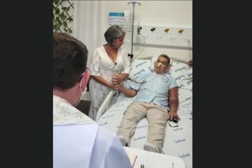 Antônio Maciel dos Santos, 53 anos e Kátia Cilene Alves da Silva, 53 anos, casaram-se em cerimônia religiosa realizada na unidade hospitalar, poucas horas antes do fim da luta contra o câncer.
