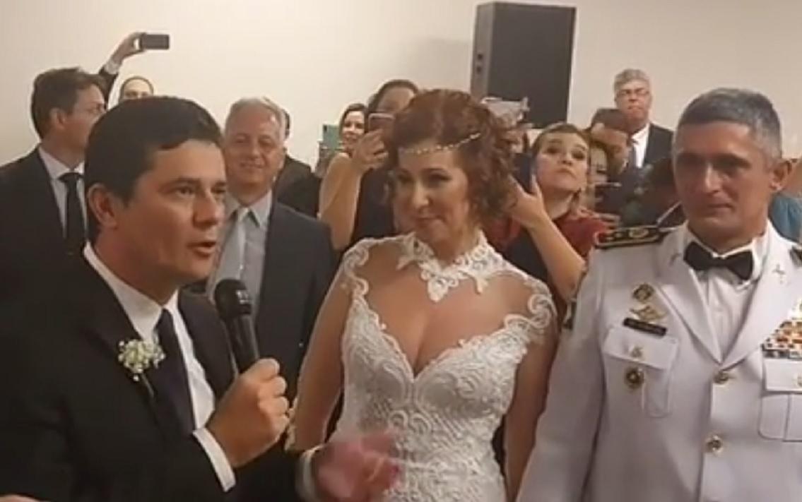 Na cerimônia realizada em fevereiro, a deputada escolheu Moro e o ministro da Educação, Abraham Weintraub, e suas respectivas mulheres, Rosângela e Daniela, como padrinhos e madrinhas de seu casamento com o coronel Aginaldo de Oliveira, diretor da Força Nacional de Segurança.