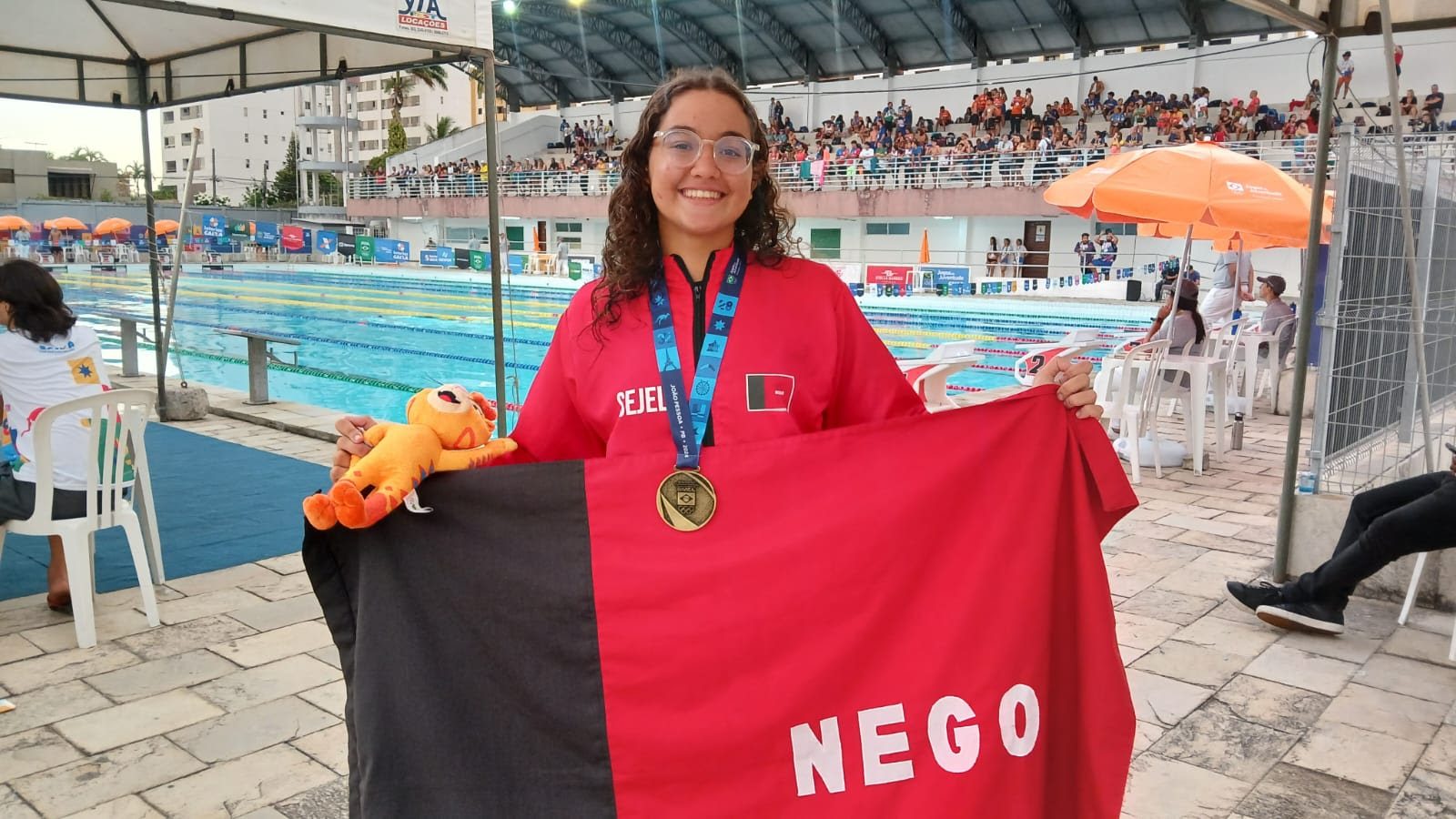 Com as medalhas de ouro conquistadas nesta segunda-feira (18) por Giovana Campos na natação, prova dos 200 metros borboleta, e Diogo Costa na luta olímpica categoria até 55 quilos, a Paraíba já computa oito medalhas no total nos Jogos da Juventude João Pessoa 2024. Destaque do dia, Giovana ainda levou a prata nos 400 metros medley e também o bronze por equipe mista no revezamento 4 x 100 medley, ao lado de Ian Aleixo, João Gabriel e Maria Luiza.