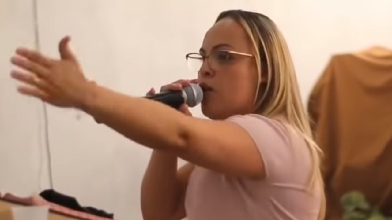 Durante sua fala, Adriele diz que filhos que enfrentam os pais têm que receber “uma mão na cara e uma pisada no pescoço”. “Se levantar a mão, eu quero o braço, se levantar a mão, eu dou nas suas pernas”, afirmou.