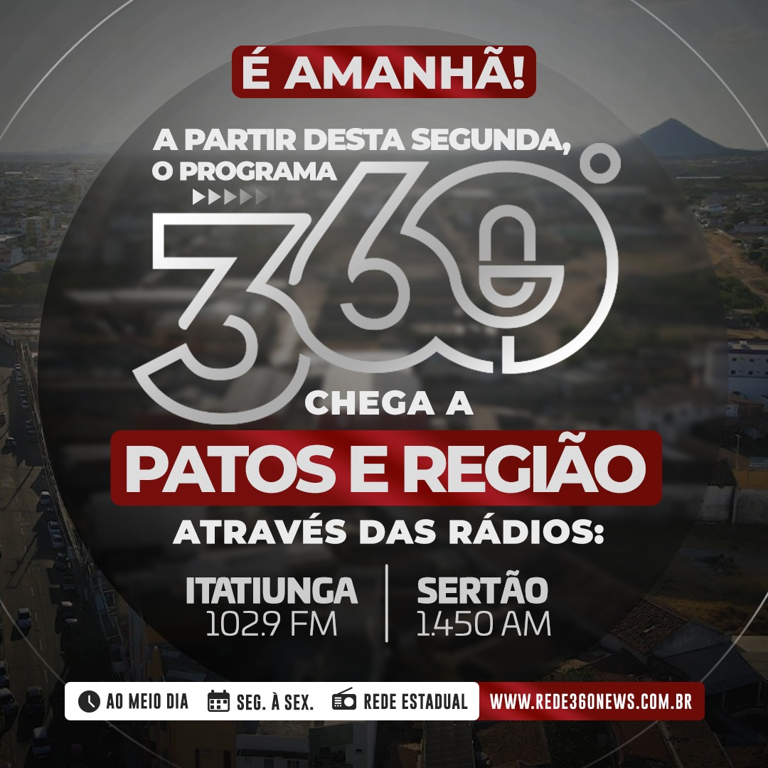 O programa 360º extende sua transmissão até Patos e região. Nesta segunda (30) a rádio Itatiunga, pelo 102,9 FM e Rádio Sertão, pelo 1450 AM, irão colocar a bancada mais polêmica da Paraíba a disposição do povo patoense.