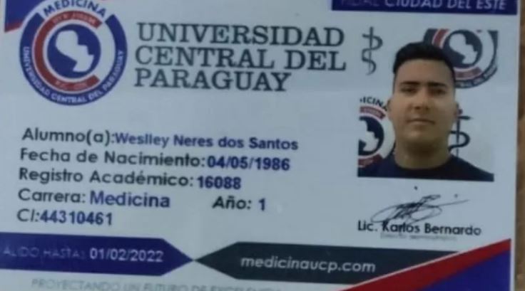 Pela carteirinha apreendida com Bebezão, ele estudava medicina na Universidad Central Del Paraguay, na filial de Ciudad del Este, distante 420 km de onde foi detido. De acordo com os agentes paraguaios, ele se passava por estudante de medicina no Paraguai para poder circular livremente no país e negociar remessas de drogas na fronteira para o PCC.