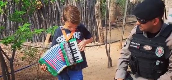 A garra de um pequeno sanfoneiro comoveu a internet nessa terça (17). O pequeno Francisco Clementino emocionou o percussionista e policial militar Jefferson Xavier, durante uma patrulha na cidade de Poço José de Moura.